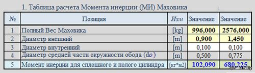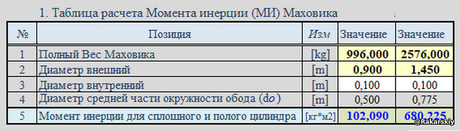 Для розрахунку маховика у вигляді повного диска, радіус беруть за повне коло, для розрахунку маховика у вигляді обода - за середню точку між зовнішнім і внутрішнім радіусом обода.